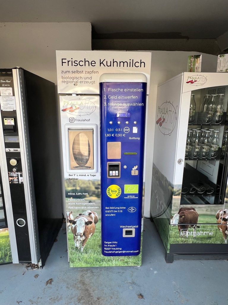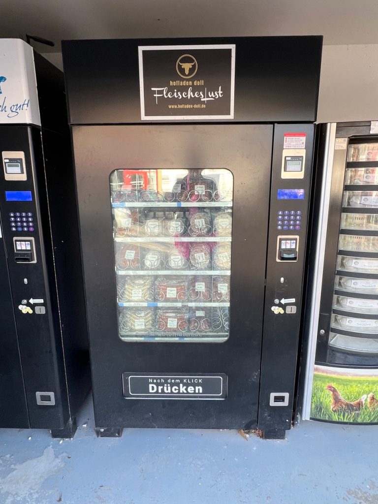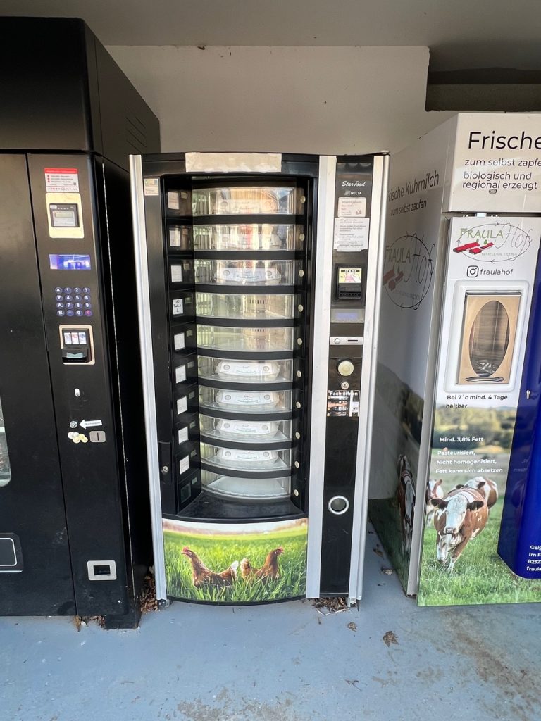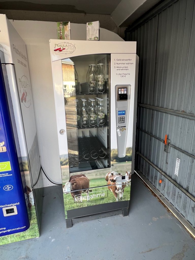 Unsere Produkte können 24 Stunden in unseren Verkaufsautomaten erworben werden. Sie sind auschließlich von glücklichen Ochsen, direkt von unserem Hof. Ergänzt wird unser Sortiment um viele Produkte für den täglichen Bedarf von Partnerbetrieben, die ebenfalls ausschließlich ökologisch handeln und produzieren.
